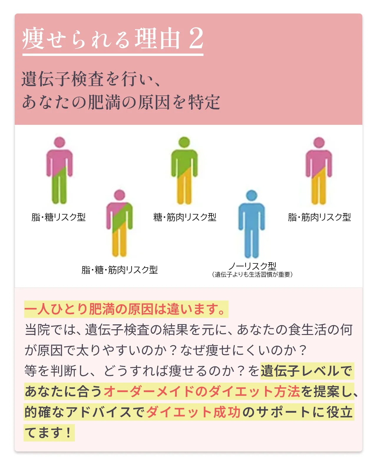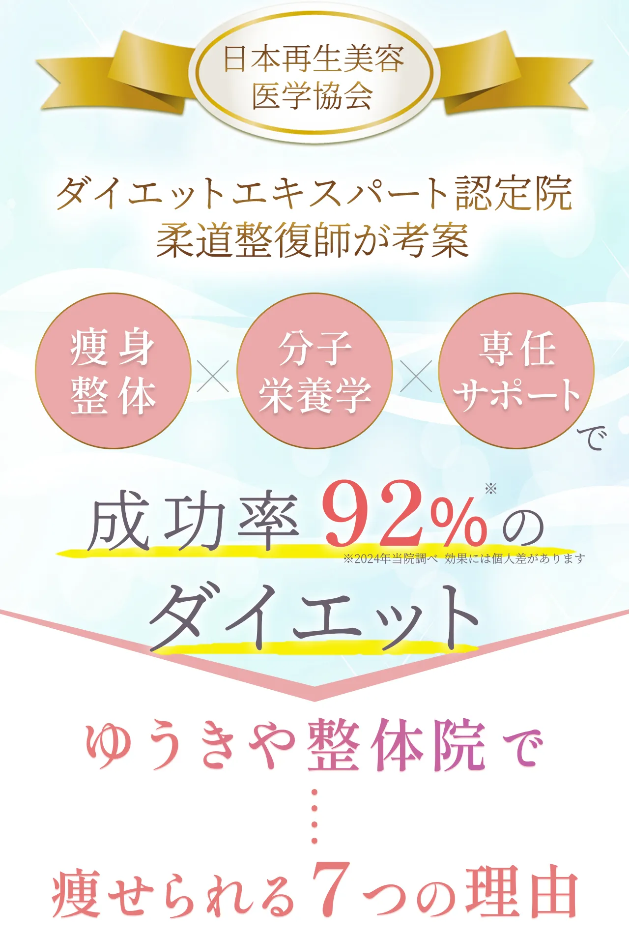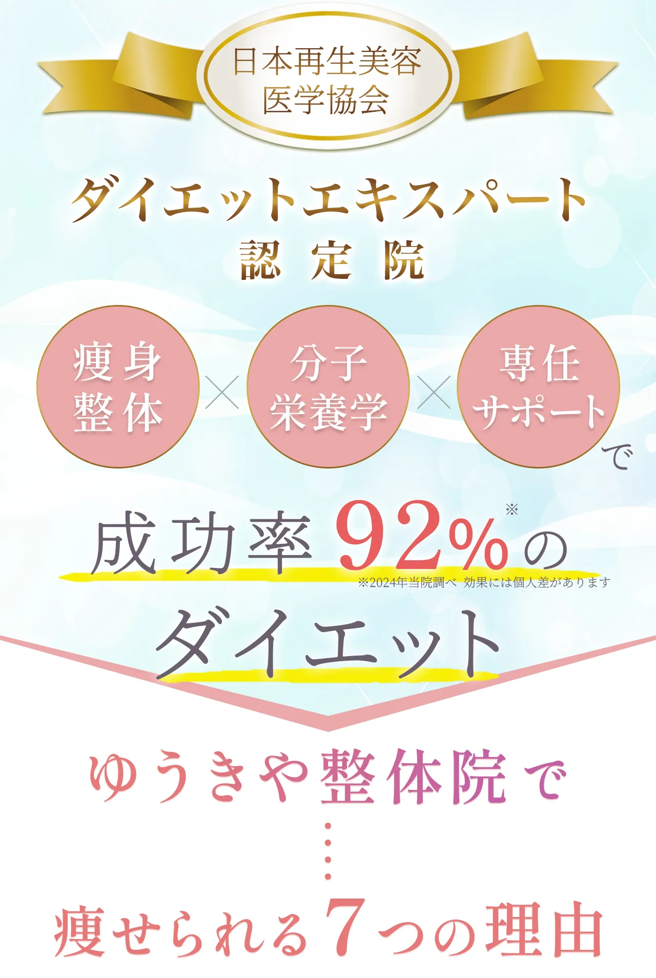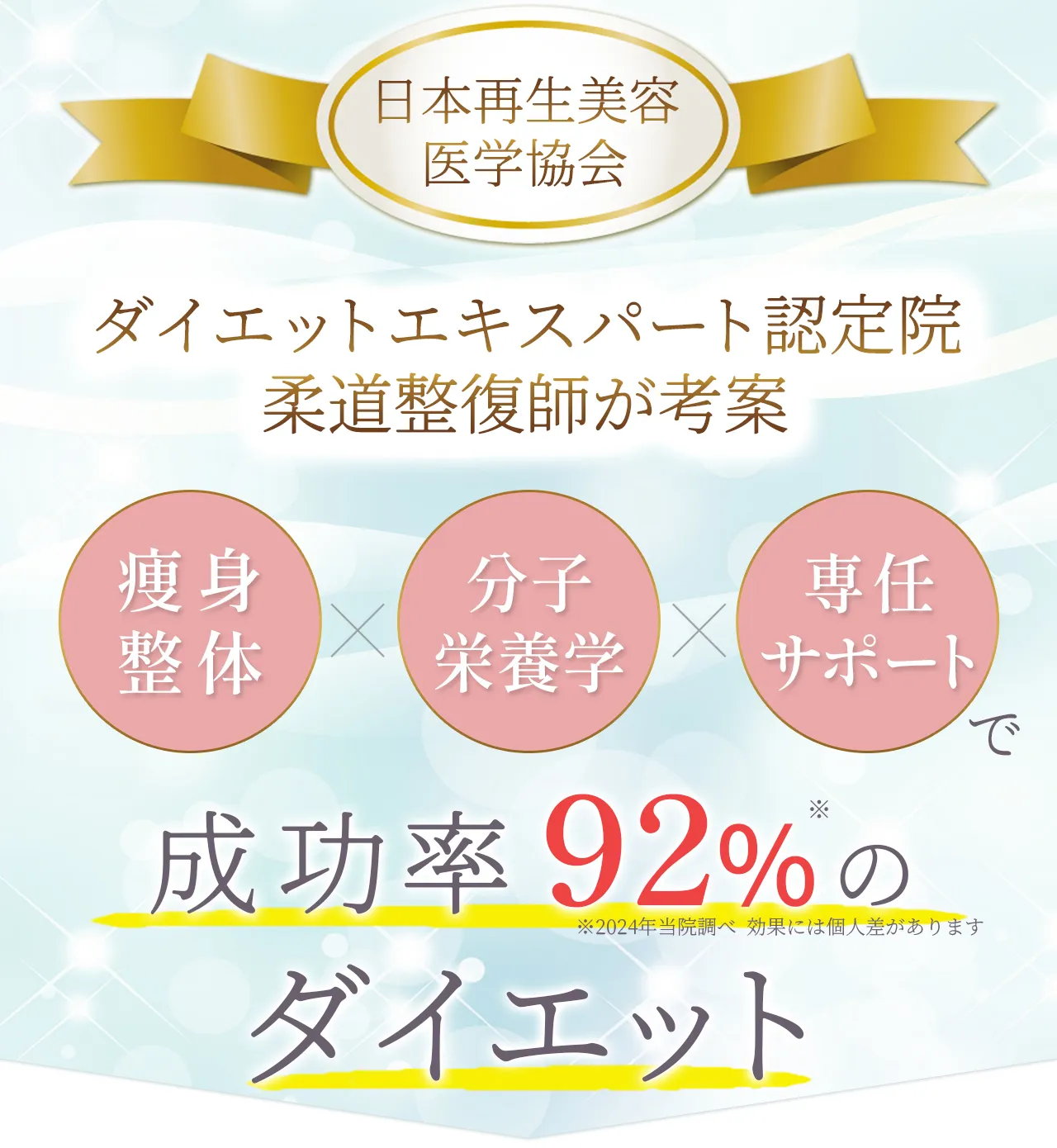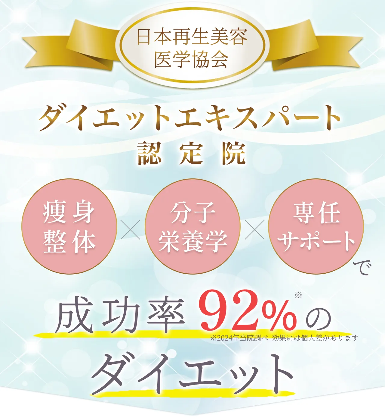 | アプローチ方法 | 食事・睡眠・ホルモンバランスなど、内側から整えて体質改善 | トレーニングで中心で一時的にカロリー消費 | 機械で外側から脂肪にアプローチ |